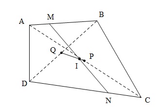 Cho tứ giác $ABCD$. Hai điểm $M,N$ thay đổi trên các cạnh $AB,CD$ sao cho: $\frac{{AM}}{{AB}} = \frac{{CN}}{{CD}}$