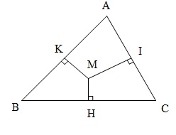 Cho tam giác $ABC, M$ là một điểm trong tam giác. $H, I, K$ lần lượt là hình chiếu của $M$ trên $BC,CA,AB$.