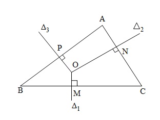 Cho tam giác $ABC.$ Các điểm phân biệt $M, N, P$ lần lượt thuộc các đường thẳng $BC, CA, AB$; ${\Delta _1}$ là đường thẳng qua $M$, vuông góc với $BC$, ${\Delta _2}$ là đường thẳng qua $N$ vuông góc với $CA$, ${\Delta _3}$ là đường thẳng qua $P$ vuông góc với $AB$. Chứng minh rằng ${\Delta _1},{\Delta _2},{\Delta _3}$ đồng quy khi và chỉ khi$\left( {M{B^2} - M{C^2}} \right) + \left( {N{C^2} - N{A^2}} \right) + \left( {P{A^2} - P{B^2}} \right) = 0$ ( Định lí Cacnô )