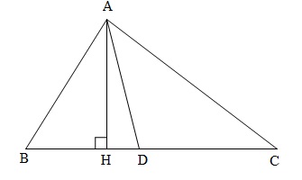 • Trường hợp $B \le {90^\circ}$ $\begin{array}{l} \widehat {HAD} = \widehat {BAD} - \widehat {BAH}\\ \,\,\,\,\,\,\,\,\,\,\,\,\, = \frac{A}{2} - \left( {{{90}^\circ} - B} \right)\\ \,\,\,\,\,\,\,\,\,\,\,\, = \frac{A}{2} - \left( {\frac{{A + B + C}}{2} - B} \right)\\ \,\,\,\,\,\,\,\,\,\,\, = \frac{{B - C}}{2} \end{array}$