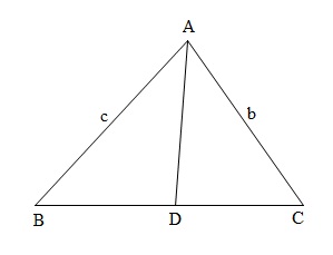 \Rightarrow A{D^2} = \frac{{{b^2}}}{{{{\left( {b + c} \right)}^2}}}A{B^2} + \frac{{{c^2}}}{{{{\left( {b + c} \right)}^2}}}A{C^2} + \frac{{2bc}}{{{{\left( {b + c} \right)}^2}}}\overrightarrow {AB} .\overrightarrow {AC} \\