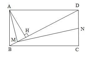 Cho hình chữ nhật $ABCD, H$ là hình chiếu của $A$ trên $BD; M, N$ lần lượt là trung điểm của $BH, CD$. Chứng minh $\widehat {AMN} = 1v$
