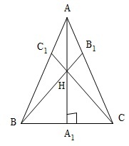 Cho tam giác $ABC$ với ba góc nhọn. Gọi H là trực tâm. Chân các đường cao kẻ từ $A, B, C$ lần lượt $A_1, B_1, C_1$. Chứng minh rằng: