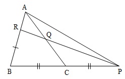 $2$. Gọi $Q$ và $R$ là $2$ điểm định bởi : $\overrightarrow{AQ}=\frac{1}{2} \overrightarrow{AC} $ và $\overrightarrow{AR}=\frac{1}{3} \overrightarrow{AB}. $