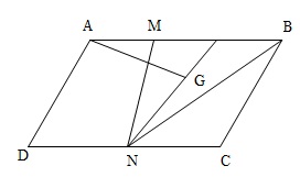 Cho hình bình hành $ABCD$, $M$ và $N$ là hai điểm lần lượt trên đoạn $AB$ và $CD$ sao cho $\frac{AM}{AB}=\frac{1}{3} $ và $\frac{CN}{CD}= \frac{1}{2}. $